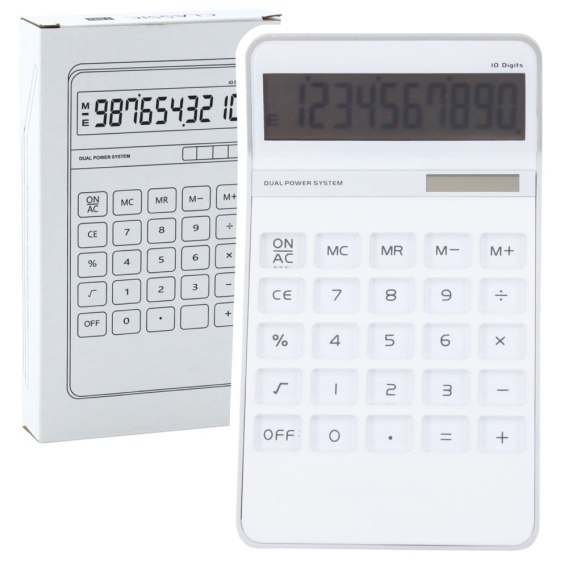 KALKULATOR BIUROWY KLASYCZNY 10D WYŚWIETLACZ 10-CYFROWY SOLAR BIAŁY