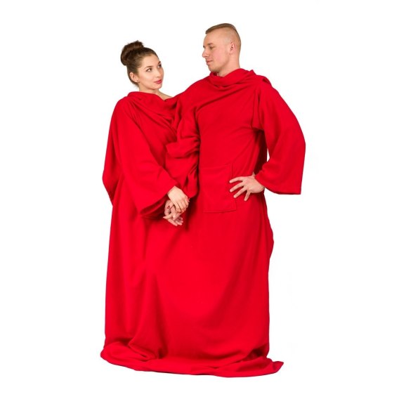 Ciepły kocyk z wygodnymi rękawami dla dwojga.
