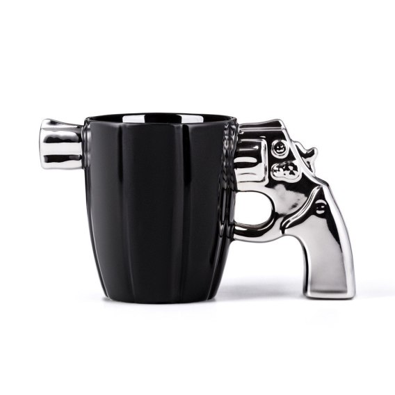 Kubek dla twardzieli, z uchem w kształcie rewolweru.