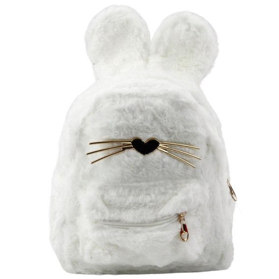 PLECAK DZIECIĘCY BIAŁY FUTRZANY Z USZAMI KRÓLICZKA I ZŁOTYMI WĄSIKAMI 3L