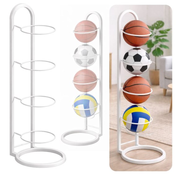 Pionowy Stojak Regał Na Piłki Metalowy Funkcjonalny Biały