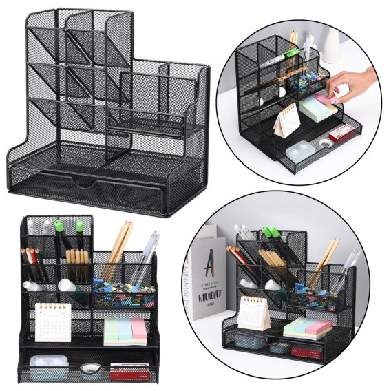 Organizer na przybory biurowe to praktyczny i elegancki dodatek do biura, który pomoże Ci uporządkować przestrzeń roboczą. Metalowa konstrukcja oraz czarny kolor wprowadzą do Twojego biura styl i porządek, jednocześnie zapewniając wysoką trwałość.