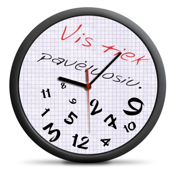 Napis na produkcie: Vis tiek pavėluosiu. Produkt w litewskiej wersji językowej.